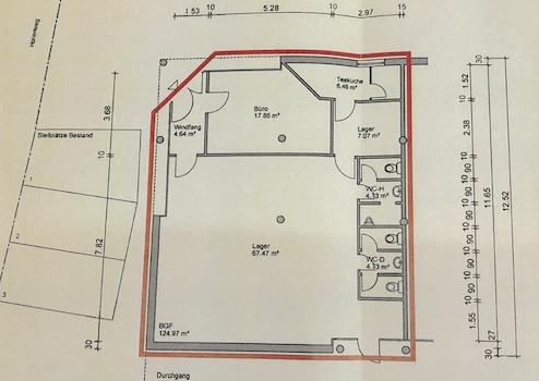 - Teilweise großformatige Fensterflächen für gute Belichtung und Werbemöglichkeiten