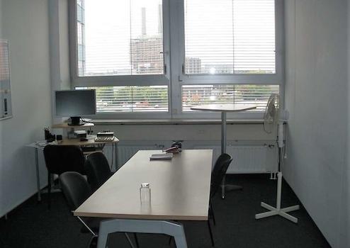 Attraktives Bürogebäude mit schönem Entrée, Personen- und Lastenaufzug, Treppenhaus und Fassade neu renoviert, helle lichtdurchflutete Räume durch deckenhohe Fenster. In jedem Stockwerk befindet sich eine Teeküche – zusätzlich befindet sich im 4. Stock eine Cafeteria mit eingebauten Herden, Kühlschränken und Mikrowellenherden. Diese Cafeteria kann gegen Mitbeteiligung an den Reinigungskosten von den Mietern mitgenutzt werden. Im Erdgeschoss befindet sich eine ständig besetzte Zentrale, die Besucher gerne weiterleitet. Die Trennwände der einzelnen Büroabteile sind aus Rigips und können ggf. den Bedürfnissen der Mieter angepasst werden. TG- Stellplätze und Freistellplätze anmietbar.