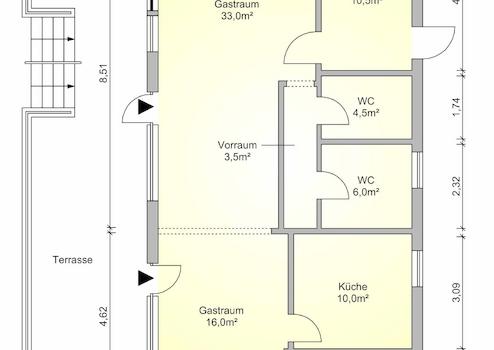 Im Inneren erwartet Sie neben der Verkaufsfläche ein Büro und mehrere WCs.