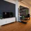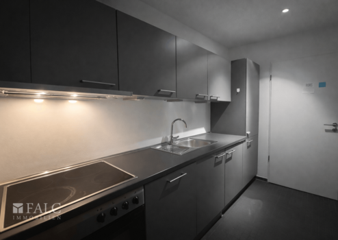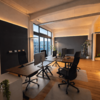 Die Bürofläche präsentiert sich in einem modernen, angenehm ruhigen Ausstattungsniveau und eignet sich durch ihre offene Wirkung ebenso wie durch klar abtrennbare Bereiche für konzentriertes Arbeiten und Besprechungen. Als Bodenbelag ist durchgehend ein Holz Dielenboden ausgeführt, der den Räumen eine warme, professionelle Anmutung gibt. Großzügige, bodentiefe Fensterflächen mit dunklen Rahmen sorgen für viel Tageslicht und eine klare, zeitgemäße Optik. Die Raumstruktur ermöglicht mehrere Arbeitsplätze sowie einen separierbaren Meeting Bereich; Glastrennwände und Türen unterstützen dabei eine transparente Zonierung. Für die technische Infrastruktur sind Kabeltrassen an der Decke sowie zahlreiche Steckdosen und Anschlusspunkte vorhanden. Die Decken sind im industriellen Stil gehalten, mit sichtbaren Installationen und einer geradlinigen Beleuchtung. Eine Teeküche ist integriert und mit Einbauzeile, Spüle, Kochfeld, Backofen, Dunstabzug sowie Stauraum ausgestattet, ideal für den Büroalltag. Ein Flurbereich verbindet die Zonen und unterstützt eine effiziente Erschließung der Fläche.