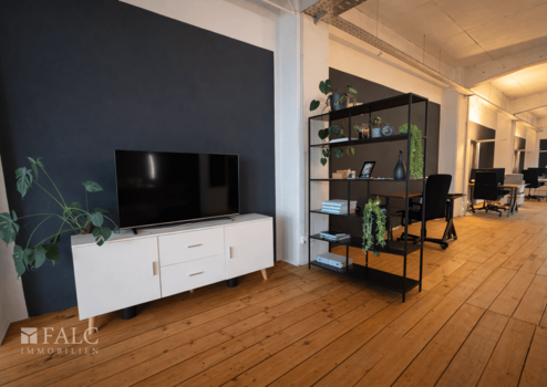 Hohe Decken, sichtbare Betonträger, warme Echtholzdielen und großzügige Fensterflächen schaffen eine Atmosphäre, die inspiriert. Das offene Raumkonzept bietet Flexibilität für kreative Teams, ambitionierte Unternehmer oder innovative Agenturen, die nicht einfach nur arbeiten – sondern gestalten wollen.