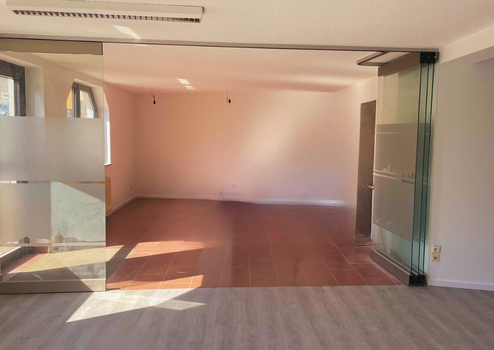 Der großer Empfangs-oder Verkaufsbereich ist durch eine Glastrennwand teilbar.
