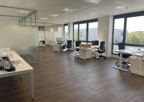 Große, helle Flächen mit großer Fensterfront, innen durch wertige Glaswände abgetrennte Meetingsräume/ Einzelbüros. Teeküche vorhanden und kann abgelöst werden. Fläche flexibel einteilbar.