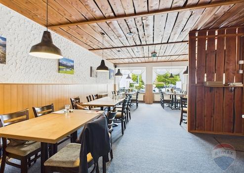 Dieses stilvolle Gastronomieobjekt aus dem Jahr 1895 vereint charmante Altbauarchitektur mit funktionaler Ausstattung. Der großzügige Gastraum (ca. 110 m²) wurde 2019 umfassend renoviert und bietet Platz für ca. 70 Gäste. Große Fenster, hohe Decken und ein offenes Raumkonzept sorgen für eine einladende Atmosphäre.