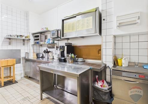 Die Küche ist gut ausgestattet und verfügt über einen angrenzenden Lagerraum. Ein Pausenraum und ein ruhiger Innenhof stehen dem Personal zur Verfügung. Die genehmigte Außenterrasse mit ca. 45 Sitzplätzen erweitert das Angebot ideal für die Sommersaison.