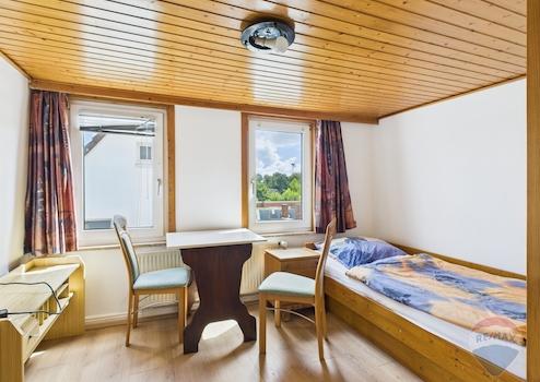 Optional kann eine separat zugängliche Einheit im Dachgeschoss (ca. 55 m²) als Personal-, Büro- oder Lagerfläche zusätzlich angemietet werden. Beheizt wird das Objekt über eine Gastherme (2014). Die Immobilie befindet sich seit 1981 im Besitz der Eigentümerfamilie und wurde laufend modernisiert.
