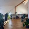 Unser Dachgeschoss wurde 2024 umfassend renoviert und bietet viel Raum zum Denken, Arbeiten und Austauschen. Es gibt einen großen, offenen Arbeitsbereich mit mehreren Schreibtischen, einen gemeinsamen Ess-/Meetingtisch, zwei abschließbare Räume, ein Bad mit Dusche sowie eine voll ausgestattete Küche. Schnelles, stabiles Internet ist selbstverständlich – Monitore und Tastaturen stehen nach Verfügbarkeit ebenfalls zur Mitnutzung bereit.