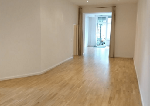Ergänzend steht ein zusätzlicher Zugang über das gepflegte Treppenhaus zur Verfügung, was eine flexible Nutzung, separate Mitarbeiterführung oder diskrete Kundenströme ermöglicht. Die hohen Decken unterstreichen den repräsentativen Charakter der Einheit und sorgen in Kombination mit der großzügigen Verglasung für ein angenehmes, lichtdurchflutetes Raumgefühl.