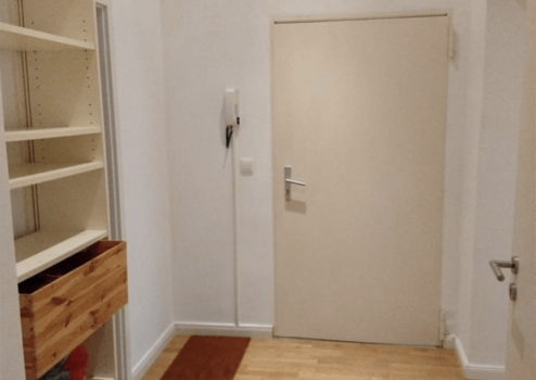Der Eingangsbereich des Hauses ist gepflegt und vermittelt den typischen Altbaucharakter mit solider Substanz. Das Treppenhaus zeigt sich ordentlich und funktional, mit klassischer Gestaltung und einem ruhigen, wohnlich geprägten Umfeld. Die Mischung aus Wohnen und Gewerbe im Gebäude entspricht dem gewachsenen Kiezcharakter und sorgt für eine stabile Nachbarschaftsstruktur.