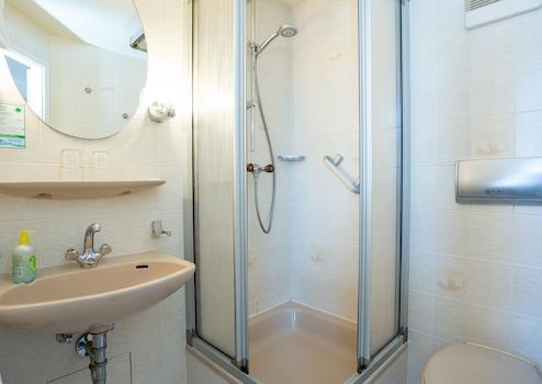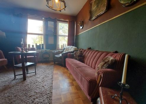 Im 2. OG befindet sich auch eine separate Wohnung mit großem Wohnzimmer, Schlafzimmer und Bad z.B. für die Wirtsleute sowie zwei kleine, private Gästezimmer oder Kinderzimmer.