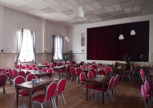 Highlight des großen Festsaals ist die bespielbare Bühne. Mit bis zu 90 Sitzplätzen lassen sich auch große Banketts ausrichten.