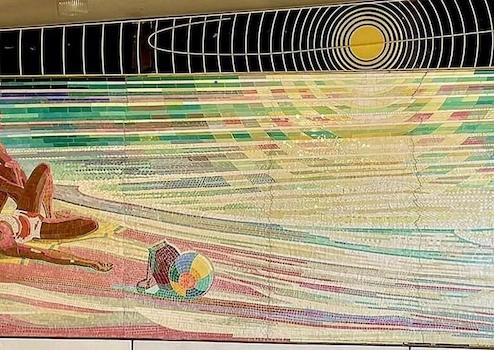 Besonders das großformatige Wandmosaik „Ein Tag am Strand“ von Pia und Walter Ebeling, ein bedeutendes Kunstwerk, das wie ein Fenster in eine andere Zeit wirkt, soll gesichert und wieder erlebbar gemacht werden.