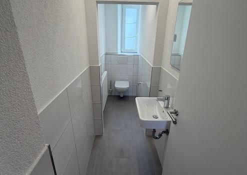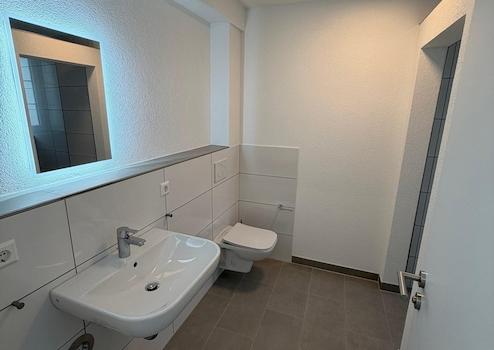 Ein modern ausgestatteter Sanitärbereich sowie zusätzliche Nebenflächen bieten hohen Komfort für Mitarbeiter und Kunden.