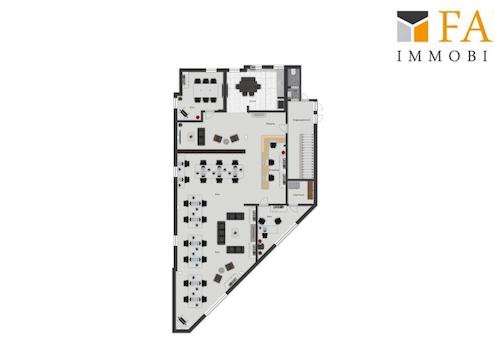 Im ersten Obergeschoss eines gepflegten und repräsentativen Geschäftshauses befindet sich diese großzügig geschnittene Büroeinheit, die vielfältige Nutzungsperspektiven eröffnet. Die durchdachte Grundrissgestaltung erlaubt sowohl eine klassische Aufteilung in Einzel- oder Doppelbüros als auch moderne Open-Space-Konzepte mit Teamarbeitsplätzen. Ebenso lassen sich Besprechungsräume, Schulungsbereiche oder Konferenzzonen problemlos integrieren.