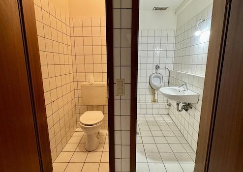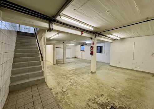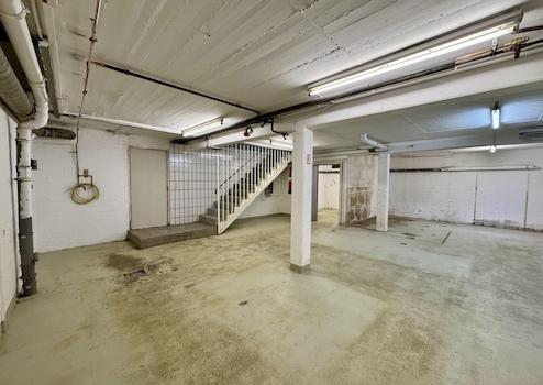 Die ca. 165 qm große Gewerbefläche im Erdgeschoss ist in vier miteinander verbundene, durch Wände optisch getrennte Bereiche gegliedert und ermöglicht flexible Aufteilungen – z. B. in Büro-, Arbeits- und Funktionszonen. Ergänzt wird die Einheit durch ca. 95 qm Lager- und Nebenflächen im Kellergeschoss, inklusive sanitären Anlagen mit Dusche.