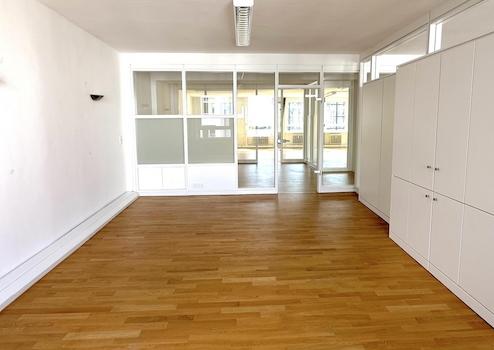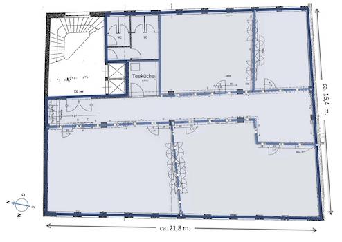 Der großzügige Grundriss liefert Raum-Flexibilität: Für bekannte und neue Nutzungen im Wandel der Büroarbeit. Ideal für kommunikatives Zusammenarbeiten in vielfältig nutzbaren, angenehmen Räumen. Bei Bedarf können einige Räume unterteilt werden. Räume für Teamarbeit, Projektarbeit, Task Forces und Get Together - auf einer eigenen Etage. Markanter Bau der gemäßigten Moderne, zweite Gründerzeit, Mitte 20. Jahrhundert.