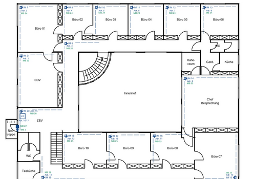 Das komplette Gebäude ist durchgängig klimatisiert - für ein angenehmes Arbeitsklima zu jeder Jahreszeit.