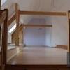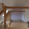 - offene Holztreppe und Sichtbalken