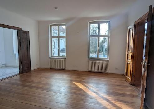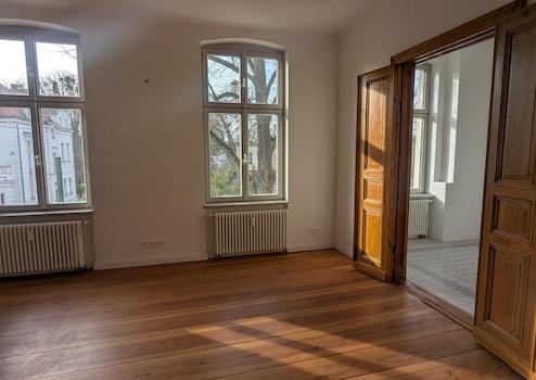Großzügige, lichtdurchflutete Räume, originale Flügeltüren sowie edle Schlossdielen prägen das stilvolle Ambiente. Die klassische Altbausubstanz schafft eine Atmosphäre von Wertigkeit und Beständigkeit – ideal für Unternehmen, die Seriosität und Profil ausstrahlen möchten.