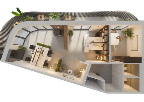 Großzügige, helle Räume mit moderner Architektur, bodentiefen Fenstern und hochwertiger Ausstattung schaffen ein repräsentatives Arbeitsumfeld für Mitarbeiter und Mandanten. Attraktive Terrassenflächen, eine Tiefgarage sowie barrierefreie Zugänge unterstreichen den hohen Qualitätsanspruch dieses Neubaus.