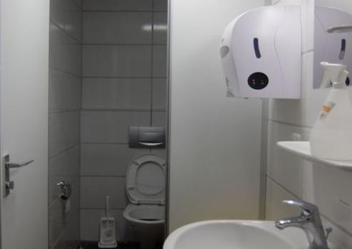 Der Büro- und Sozialtrakt wird mit einer Gaszentralheizung beheizt und ist mit Vinyl und Fliesen ausgelegt. Auf jedem Stockwerk ist eine WC-Anlage installiert. Im Keller befinden sich die Umkleiden und Funktionsräume. Im Erdgeschoss sind das Büro, der Aufenthaltsraum, das Produktionsbüro mit Vorraum, der auch gleichzeitig als Durchgang in die Halle dient. Die Verkabelung verläuft in Brüstungskanälen. Im Obergeschoss befinden sich Büros. In den abgehängten Decken sind Leuchten integriert und die Verkabelung erfolgt über Bodentanks.