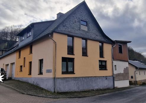 Landhaus mit Nebengebäuden, die vielseitig nutzbar sind, wie vorhanden und noch ebenso ausbaufähig nach ihren Wünschen. Das Haupthaus wurde 2002 komplett saniert und erhielt einen neuen Dachstuhl mit teurer PFREFA Bedachung. Im unteren Bereich des Hauses befindet sich eine Feuerstätte für den im Wohnbereich befindlichen Kachelofen. Mit diesem Ofen wurde ausschließlich geheizt. Er wurde 2024 erneuert und durch den Bezirksschornsteinfeger abgenommen. Ebenso einen hochwertigen Innenausbau. 1997 wurde eine neue Ölzentralheizung eingebaut. Ausbaureserve für weiteren Wohnraum ist ausreichend vorhanden. Die Nebengebäude sind etwas älter aber vielseitig nutzbar. Zum Beispiel befindet sich in einer Garage eine Grube mit Beleuchtung für eigene Fahrzeugreparaturen. Drei Garagen haben 2,7 x 2,7 mtr. große elektrische Garagentore. Eine durchfahrt in den Innenhof ist möglich. In dem Bereich wurde ein Gäste WC mit Urinal errichtet und zwei Waschgelegenheiten mit Warmwasser. Weiterhin befindet sich im Innenhof eine Große überdachte Terasse mit angrenzender Küche. Der Pool sowie Teile des Innenhofs sind erst 2024 überdacht worden. Platz für Hunde ist ebenfalls gegeben. Das Hundehaus hat teils Fußbodenheizung und einen direkten Zugang zum eingezäunten Garten. In einem der Nebengebäude wurde eine Wohlfühloase erschaffen mit einer großen Sauna ( ca. 8 Personen) Wasserführende Fußbodenheizung. Dusche, WC. Himmalaya Salzwand, Ruheliegen mit Massagefunktion. Im Innenhof befindet sich der überdachte Pool. 2023 wurde eine Photovoltaikanlage mit 12 KW auf dem Scheunendach installiert. Erdgeschoß : großes Wohn- Esszimmer, offene Küche, incl. Kaminofen. Schlafzimmer mit WC und Waschbecken. Weiterhin ein Badezimmer mit WC, Waschbecken , Dusche und Solarium. Obergeschoss: Großes Wohn-Esszimmer mit Galerie und Kachelofen. Weiterhin eine Einbauküche mit Gemütlicher Sitzgelegenheit und großem Gasherd. Die Küche wurde 2016 neu errichtet und hat eine elektrische Fußbodenheizung. Weiterhin zwei Schlafzimmer, in einem befindet sich ein Großer Einbauschrank. In der Etage befindet sich ein weiteres Bad mit zwei Waschbecken, WC, Dusche und Badewanne. Galerie : Zwei Zimmer, welche auch zu einem Umfunktioniert werden können. Eins der Zimmer hat eine große Bodentiefe Fensterfront mit Weitblick. In einem der Zimmer ist ein großes Hochbett. Im gesamten oberen Wohnbereich ist Echtholz Stäbchenpakett. Die Umfangreiche Großzügige Wohn und Nutzfläche lässt keine Wünsche offen.