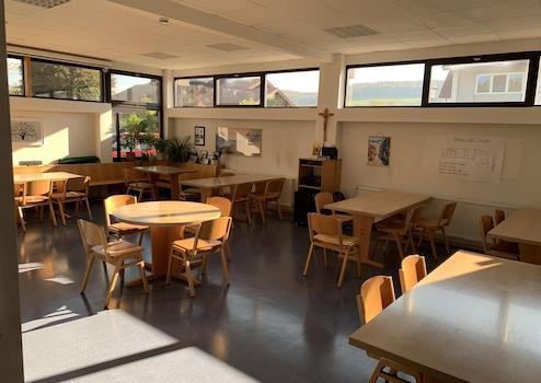 - Gepflasterte Freifläche als Pausenplatz
