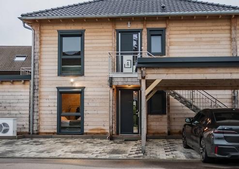 Willkommen in diesem Jolka-Holzhaus – einem durchdachten Wohnprojekt, das Nachhaltigkeit, Großzügigkeit und Flexibilität vereint. Das Gebäude beherbergt zwei eigenständige, hochwertig ausgestattete Wohnungen und eignet sich ideal für langfristige Vermietung oder die Kombination aus Eigennutzung und Kapitalanlage.