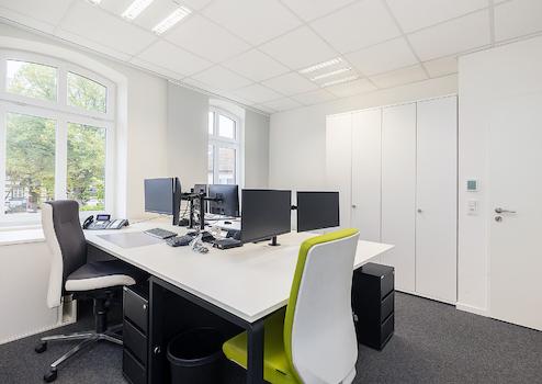 Hier erwerben Sie ein 2012 umfassend modernisiertes und um ein Treppenhaus erweitertes Bürogebäude. Zeitgemäßes Arbeiten mit viel Tageslicht ist hier problemlos möglich. Die beiden Einheiten sind durch die lichtdurchfluteten Räume der ideale Ort für zeitgemäßes und produktives Arbeiten.