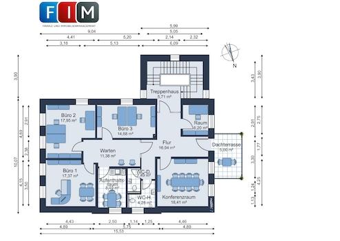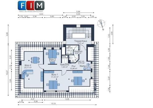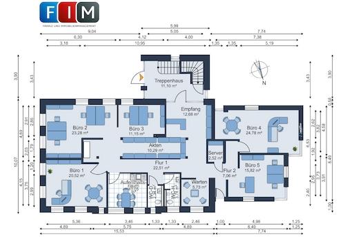 Insgesamt stehen Ihnen 421,11 m² Bürofläche zur Verfügung, die um weitere Abstellmöglichkeiten im Keller ergänz werden.