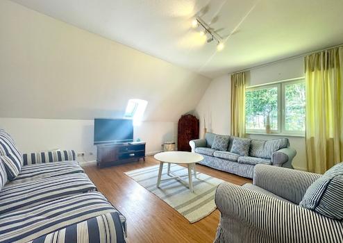 Dachgeschoss: Wohnzimmer, 2 Schlafzimmer, Küche, Badezimmer mit Dusche