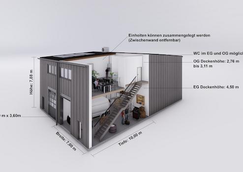 Modularer Gewerbepark Gewerbeeinheit Halle Neubau Gewerbehalle Büro Lager Werkstatt Garagenpark