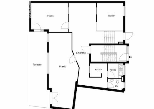 Dank separatem Eingang und funktionaler Raumaufteilung ist eine diskrete Kunden- oder Patientenführung problemlos möglich. Die Fläche ist mit hochwertigem Parkettboden ausgestattet, ruhig gelegen und bietet zugleich eine sehr gute Erreichbarkeit für Mitarbeiter und Besucher.
