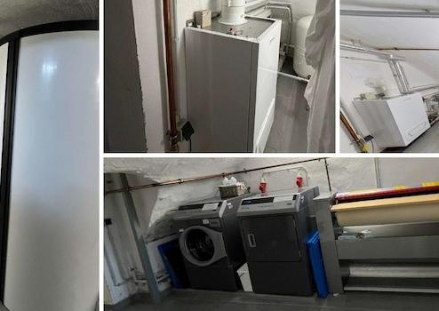 •eigene Wäscherei mit Waschmaschinen, Trockner und ggf. Mangeln