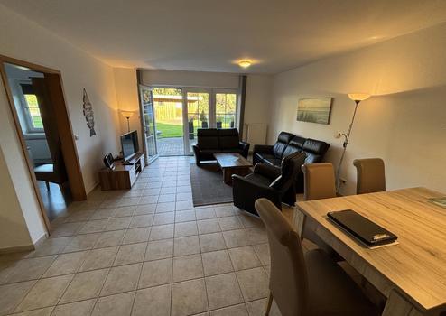• Großzügiges Wohnzimmer mit Essbereich und Zugang zur Terrasse und Garten