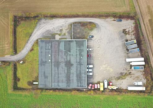 Die großzügige Freifläche auf dem Grundstück bietet zusätzliche Optionen, etwa für Rangierflächen, Stellplätze, Außenlager oder Zwischenlagerung.