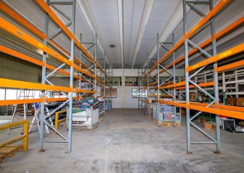 Der Zugang führt in den funktionalen Hallenbereich mit weitläufigen, gut nutzbaren Flächen und einer Deckenhöhe von ca. 5,5 m. Mehrere Rolltore ermöglichen eine praxisgerechte Andienung und erleichtern die Warenbewegung. Die Hallenflächen sind überwiegend offen gehalten und bieten damit gute Voraussetzungen für Regalsysteme, Kommissionierung oder Maschinenaufstellung.