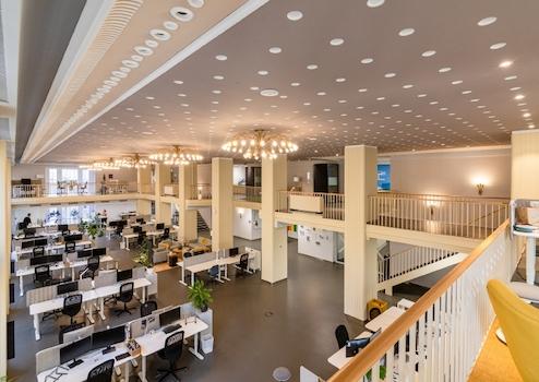 Das Erdgeschoss beherbergt aktuell ein Restaurant mit ca. 720 m² Gastronomiefläche, das sich hervorragend als stilvoller Empfangs-, Gastronomie- oder Foyerbereich für Veranstaltungen nutzen lässt. Die 1. und 2. Obergeschosse werden derzeit als Büroflächen genutzt und bieten vielfältige Möglichkeiten für eine Umnutzung zu Zuschauerbereichen, Backstageflächen, Proberäumen oder Produktionsflächen.