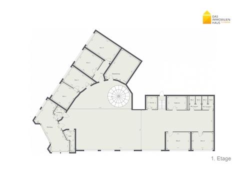 2. Etage: Empfangsbereich, Wartebereich, 4 Büros, 1 Besprechungsraum, Teeküche, Abstellraum, 2 WC´s