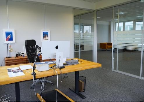 •Teilweise Glaswände und Schiebetüren für modernes, offenes Arbeiten