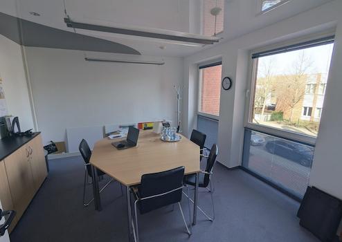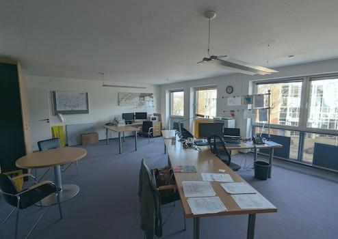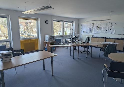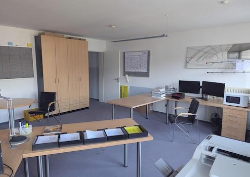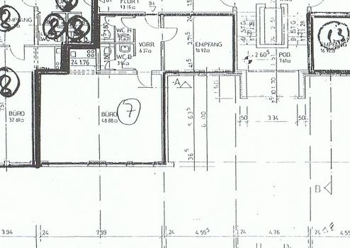 Dieses gut geschnittene Büro liegt im 1. Obergeschoss eines architektonisch anspruchsvollen Bürohauses. Das lichtdurchflutete Treppenhaus ist mit einem Aufzug ausgestattet. Das Büro ist wie folgt aufgeteilt: Ein Büroraum mit ca. 16 qm, ein Hauptraum mit ca. 49 qm Grundfläche, sowie Flur und getrennten WC-Einheiten. Ein Kellerraum ist nicht vorhanden.