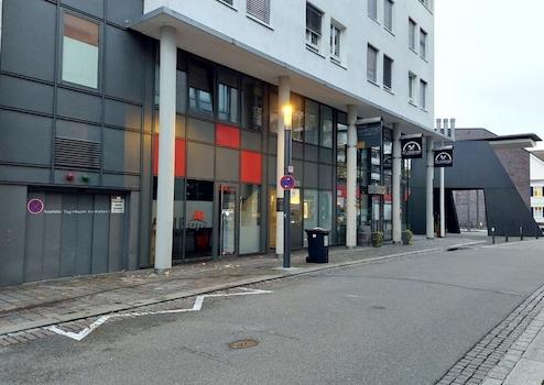 Das Gebäude liegt zentral in bester Innenstadtlage, nur wenige Schritte vom Stadtkern entfernt, direkt am Burghof, neben einer sehr guten Anbindung an Öffentliche Verkehrsmittel. Sämtliche Geschäfte, Behörden, sowie der Hauptbahnhof binnen weniger Minuten zu Fuß erreichbar. Die Bundesstraße B317, die Autobahn A5 und der Anschluss in die Schweiz werden innerhalb von wenigen Minuten erreicht.