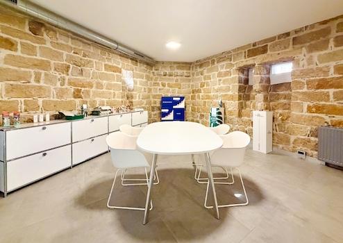 Im Souterrain befinden sich die Küche, ein Pausenbereich sowie ein Besprechungsraum.