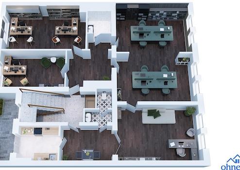 Die Etagen können für Büro oder kleine Fertigungen wie z.B. Schmuck genutzt werden.