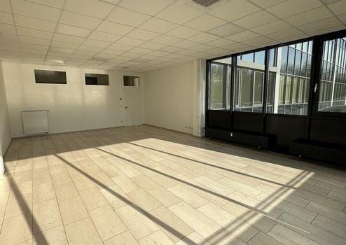 Der Bürobereich umfasst zwei unterschiedlich große Büroräume, eine Küche, ein Lager sowie ein Damen- und ein Herren-WC. Das Damen-WC kann ebenfalls barrierefrei genutzt werden.
