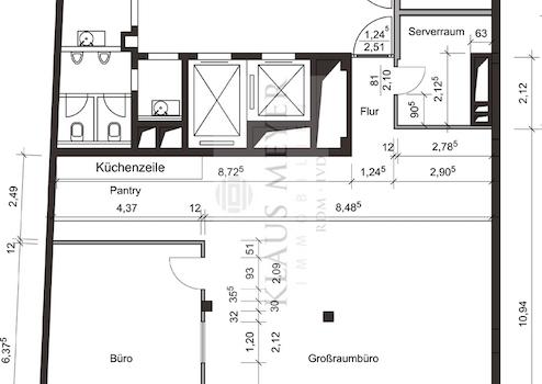 Büro 1.OG links, ca. 467 m² - komplett modernisiert siehe Ausstattung - € 10,74 pro m² netto kalt mtl. Büro 2.OG links, ca. 467 m² - im Istzustand nicht saniert, Übergabe frisch gestrichen – in diesem Zustand zum ...