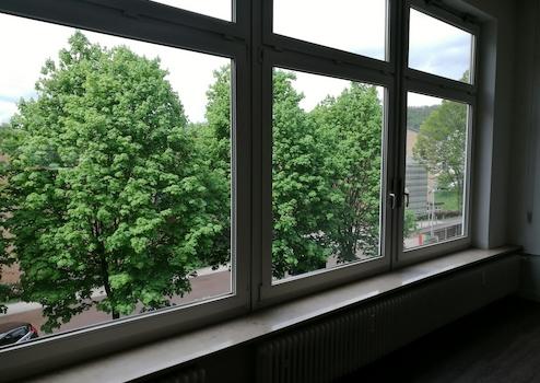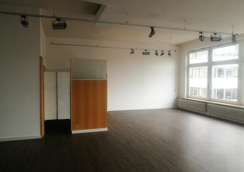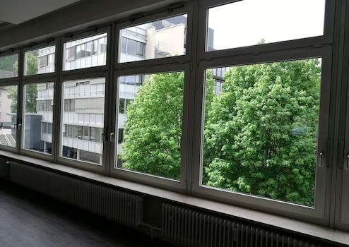 Es handelt sich um eine sehr schöne, ebenerdige Tageslicht-Geschäftsfläche von 130 m², die ohne störende Säulen sehr großzügig ist und eine freie Gestaltung und Einteilung ermöglicht. Höhe EG ca. 3,40 Meter Den hinteren Bereich bildet über die gesamte Breite eine durchgängige, hohe Fensterfront, die das Tageslicht hereinläßt.