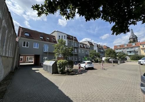 Pkw-Stellplätze können bei Bedarf im Innenhof oder in der Tiefgarage angemietet werden.