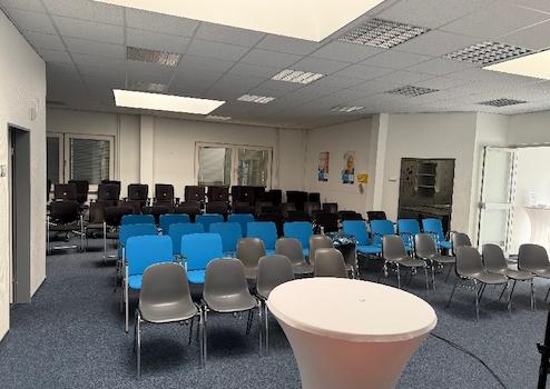 Die angebotenen Schulungsräume befinden sich in einem freistehenden Bürogebäude in Krefeld und eignen sich ideal für Schulungen, Präsentationen, Seminare oder Workshops. Die Räumlichkeiten sind speziell auf Präsentationszwecke ausgelegt und verfügen über einen Beamer, eine Leinwand sowie eine Bestuhlung für bis zu 70 Personen. Ein gepflegter Teppichboden sorgt für eine angenehme Arbeitsatmosphäre.