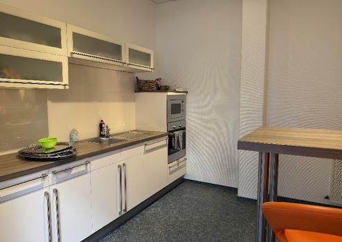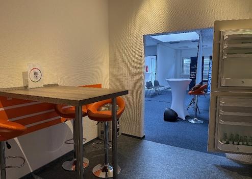 Eine offen gestaltete Teeküche schließt direkt an die Schulungsräume an und bietet ausreichend Platz für Pausen, Häppchen und Getränke. Die vorhandenen Sanitäranlagen befinden sich in einem sehr guten und gepflegten Zustand. Besonders hervorzuheben sind die sehr guten Parkmöglichkeiten in unmittelbarer Nähe des Gebäudes, die eine komfortable Anreise für Teilnehmer und Referenten gewährleisten.